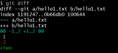 - 'hello1.txt' 파일에서 "2"를 제거하고 "two" 추가하면,