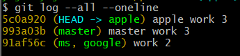 git log --all --oneline # 모든 커밋 내용을 한 줄로 표시
