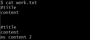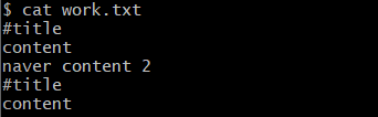 vim work.txt # work.txt에 'apple content 3' 추가 입력 후 저장