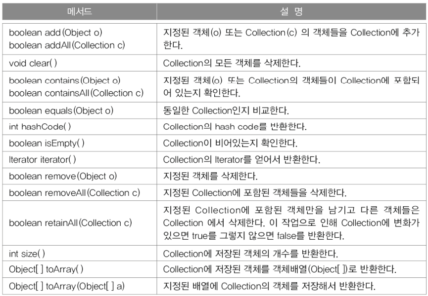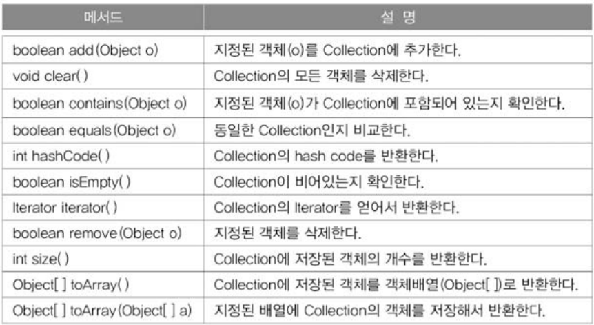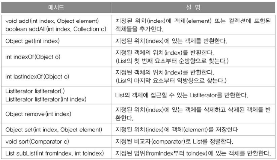 - 구현클래스 : ArrayList, LinkedList, Stack, Vector 등