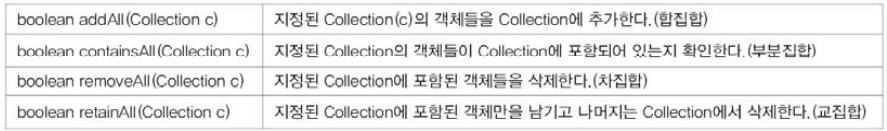 - 구현클래스 : HashSet, TreeSet 등