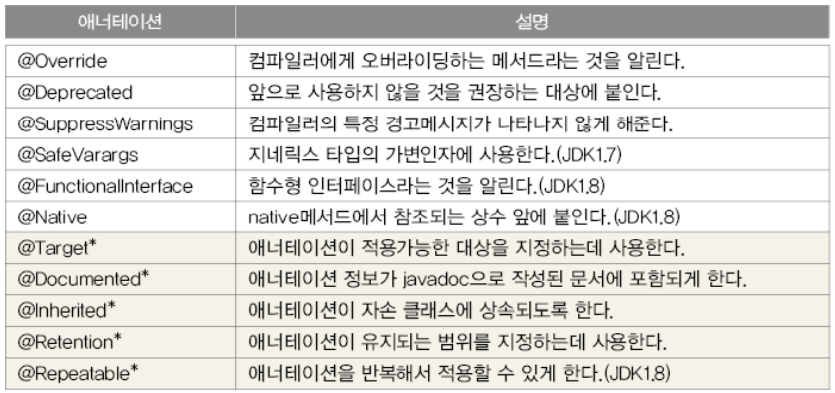 : 어노테이션의 메서드는 추상메서드이며, 어노테이션을 적용할 때 모두 지정해야 함