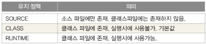 : 어노테이션이 유지되는 기간을 지정하는데 사용