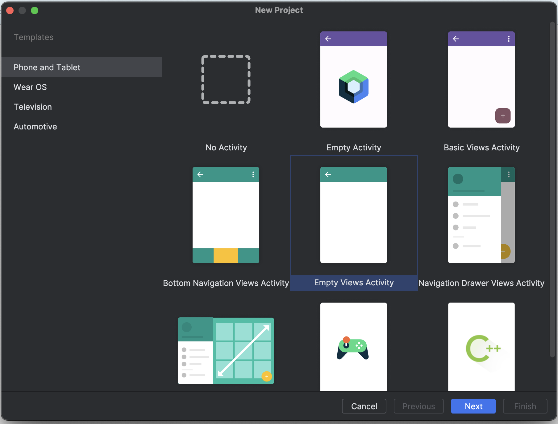 ☾ 빈 템플릿인 [Empty Views Activity] 선택