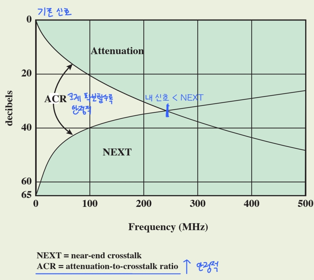 ACR(attenuation-to-crosstalk ratio) ↑ 신호 안정적
