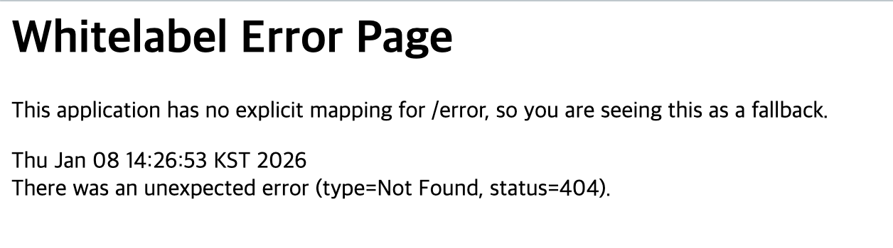 브라우저에 localhost:8080을 입력하면 아래와 같은 에러 페이지 뜬다.