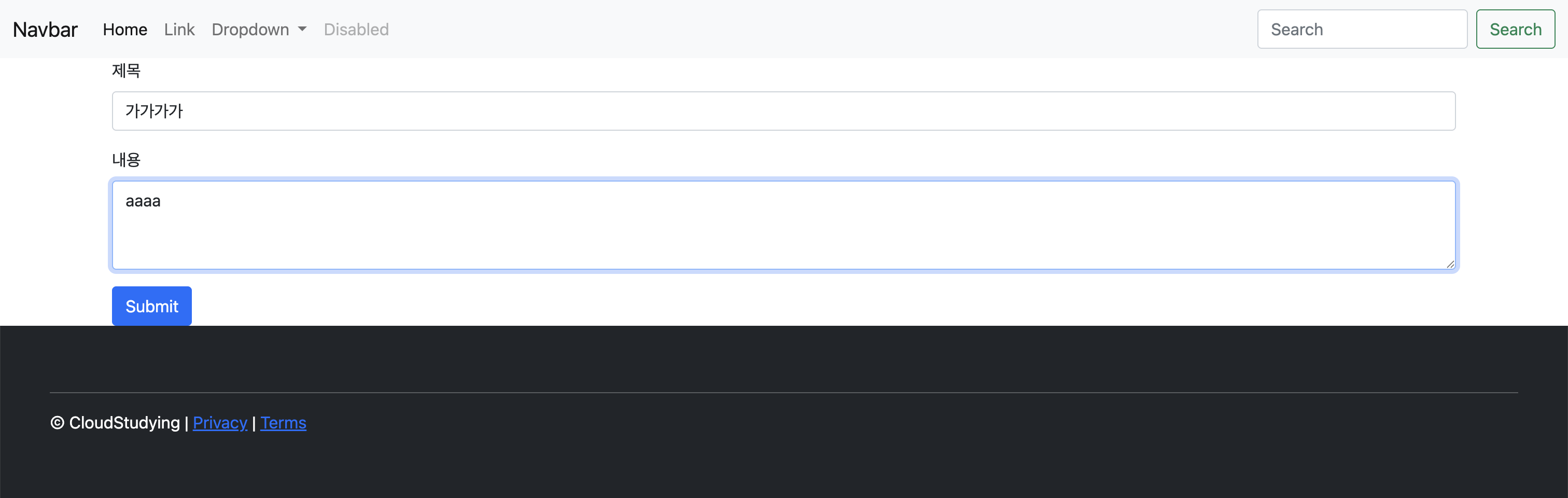 웹 브라우저에서 localhost:8080/articles/new에 접속해서 제목과 내용을 입력한다.
