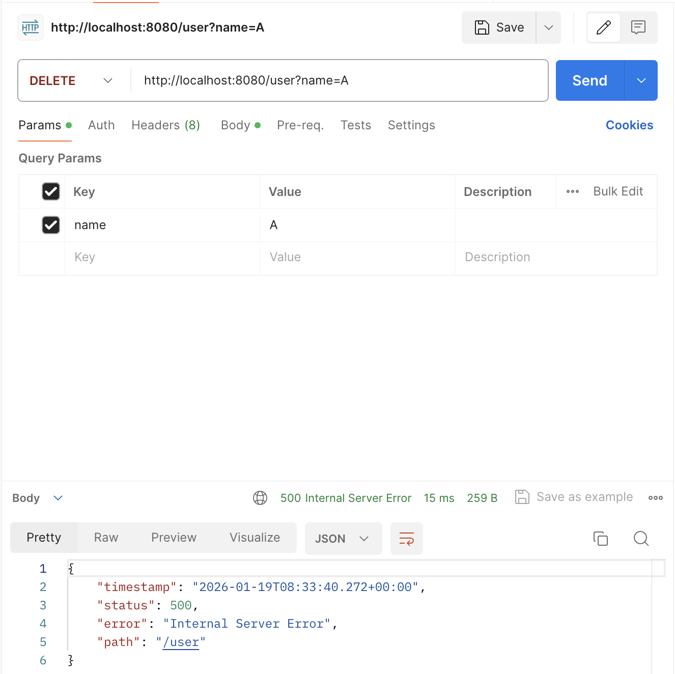 HTTP Body : 문자열 name(삭제되어야 하는 사용자 이름)