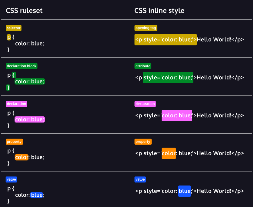 - 속성의 값을 웹브라우저가 css의 문법에 따라서 해석하여 그 결과를 style 속성이 위치하고 있는 태그에 적용