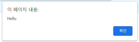 - 확인 버튼을 가지며 메시지를 지정할 수 있는 경고창을 띄움