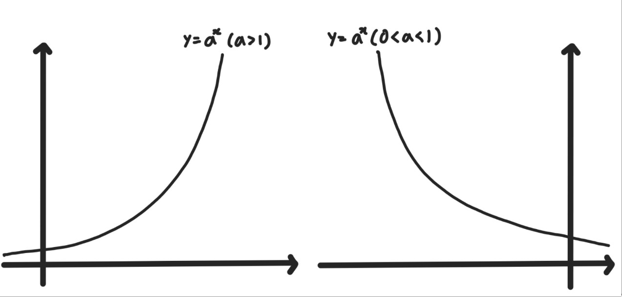 : 변수 x가 지수 자리에 있는 함수(밑이 1이면 함수가 아니고 0이면 허수 포함하므로 제외)