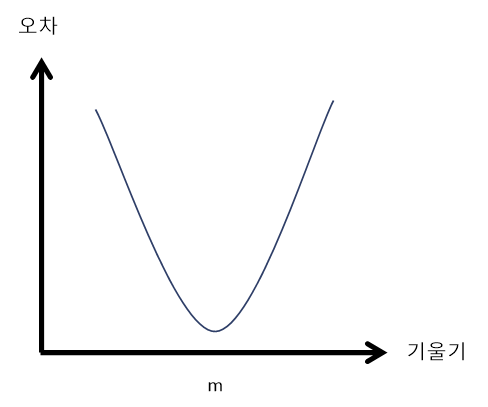 - 적절한 기울기(m)를 찾았을 때 오차 최소화