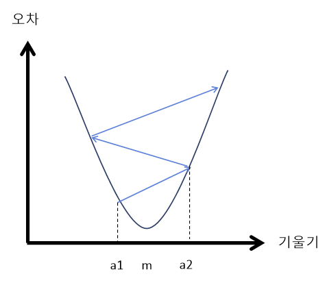 : 기울기를 바꿔 이동할 때 적절한 학습률을 찾지 못하면 a값이 한 점으로 모이지 않고 발산한다