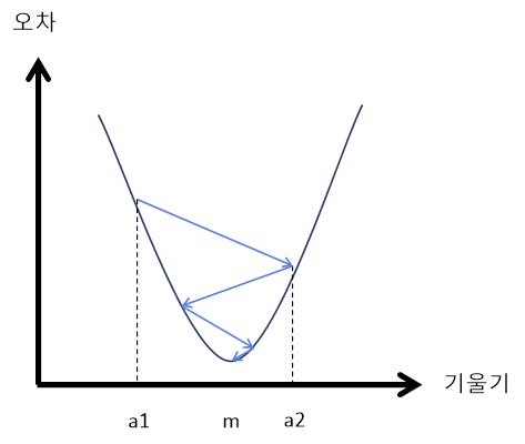 - 기울기를 너무 크게 잡거나 너무 작게 잡으면 오차 커짐
