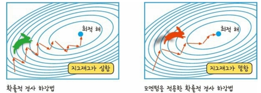 : 이동 방향이 일정하게 유지되고, 지역 최솟값에 빠지지 않고 전역 최솟값을 더 빠르게 찾을 수 있음