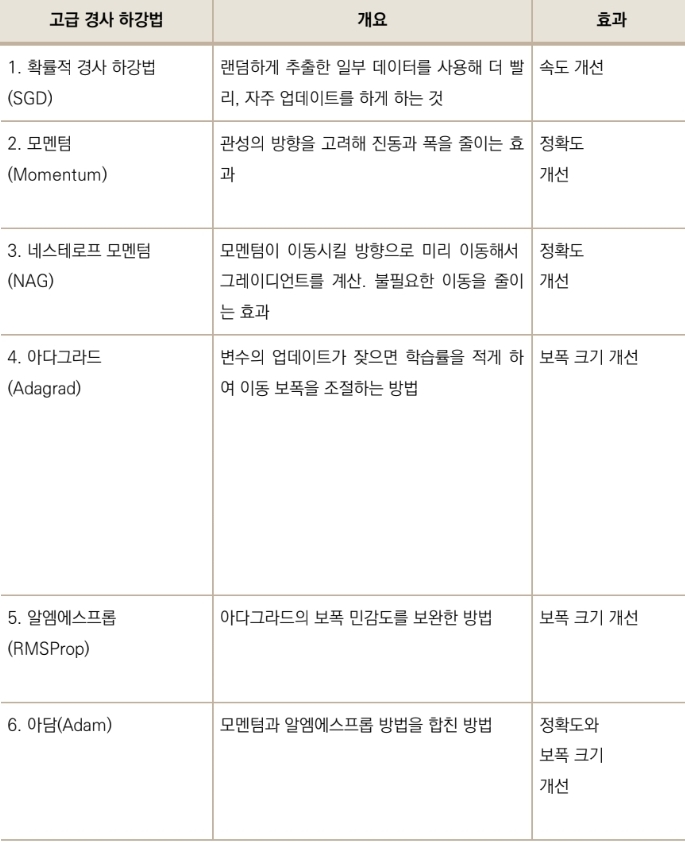 - 딥러닝에서는 텐서플로에 포함된 옵티마이저(optimizers)라는 객체에 넣어 사용