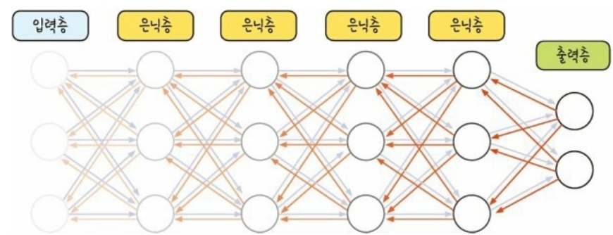 - 문제 : 은닉층이 늘어나면서 출력층에서 시작된 가중치 업데이트가 처음 층까지 전달되지 않음