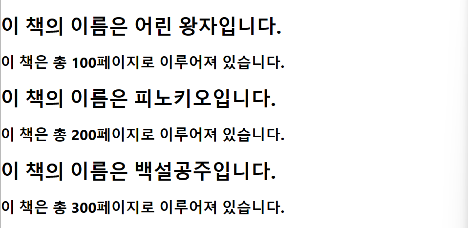 <h2>{`이 책은 총 ${props.numOfPage}페이지로 이루어져 있습니다.`}</h2>