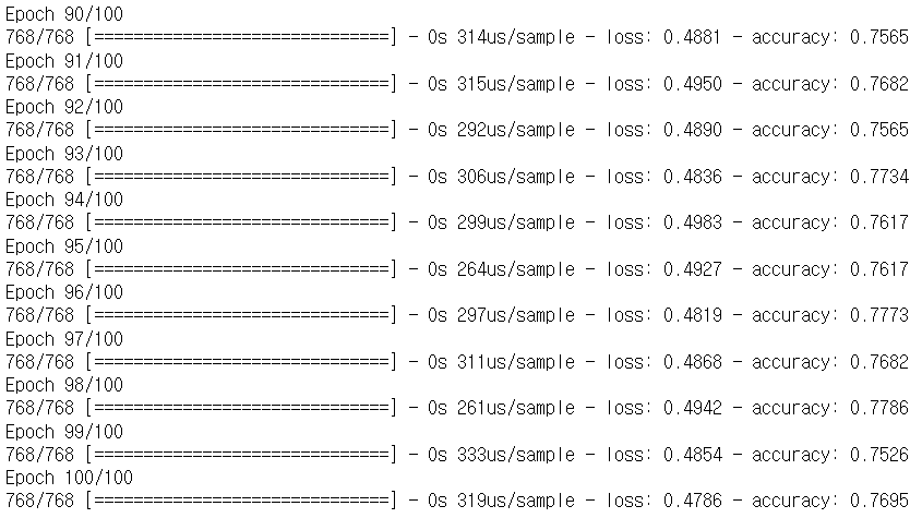 history=model.fit(X, y, epochs=100, batch_size=5)