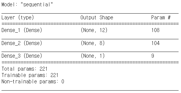 - Output Shape : 각 층에 몇 개의 출력이 발생하는지 나타냄(샘플의 수, 속성의 수)