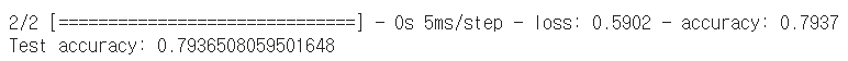 # 모델을 테스트셋에 적용해 정확도를 구함