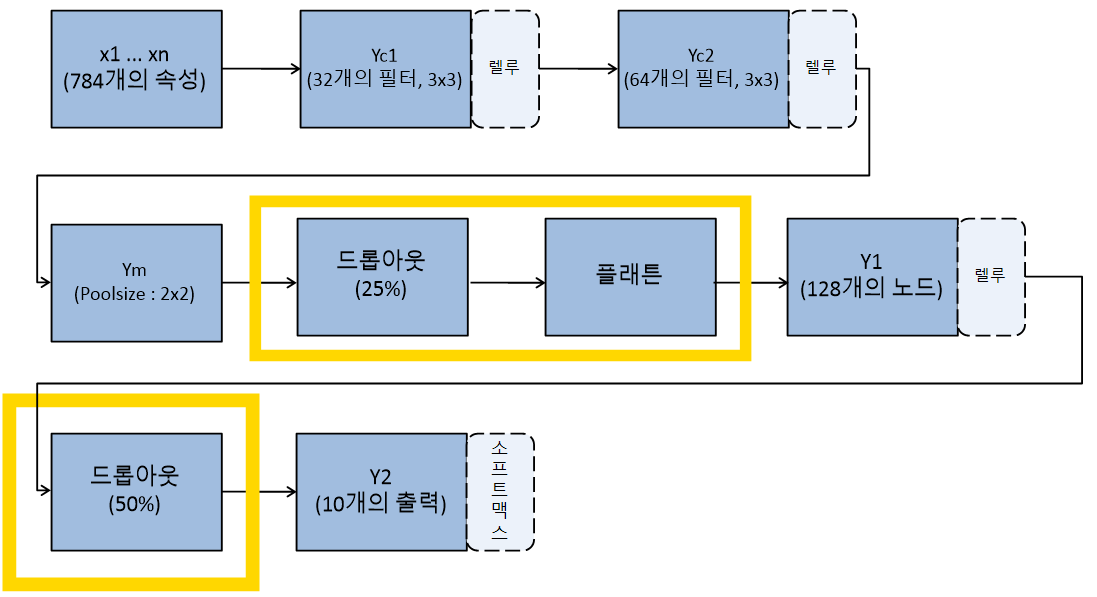 - rate : 드롭 아웃을 실행하고 싶은 노드의 비율 결정